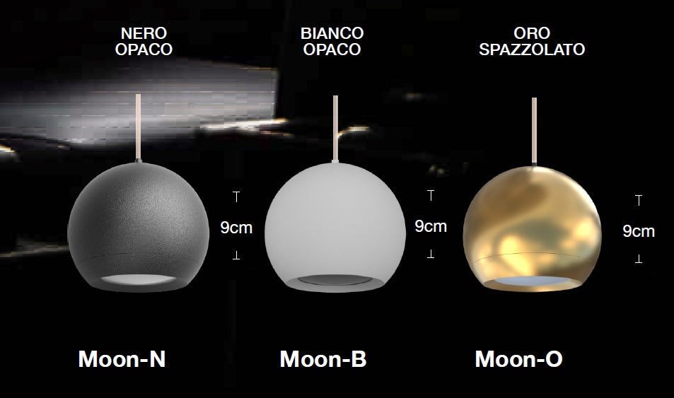 - La lampada Moon è un'elegante sfera realizzata in alluminio, progettata per aggiungere un tocco di stile e illuminazione alla tua casa. Con la sua forma armoniosa e la supercie liscia, la lampada Moon si adatta perfettamente a qualsiasi ambiente. La parte inferiore della sfera è rimovibile, consentendo di inserire comodamente una lampadina Gu10 per creare l'atmosfera desiderata. Puoi scegliere tra diverse fniture per adattare la lampada al tuo stile: nero opaco per un look moderno e sofisticato, bianco opaco per un tocco di eleganza minimalista, o oro spazzolato per un effetto lussuoso e caldo.